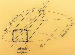 In the 1950s and 1960s two types of reservoirs were developed: integrated and non-integrated. The first are obtained by making a section of the aircraft structures watertight (Fig.6). Non-integrated tanks, on the other hand, are built separately and subsequently mounted. They can be manufactured with three different materials: flexible rubber, rigid non-metallic, and light alloy.