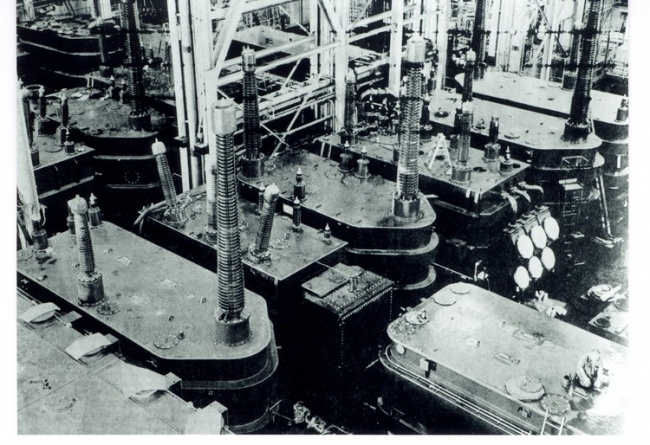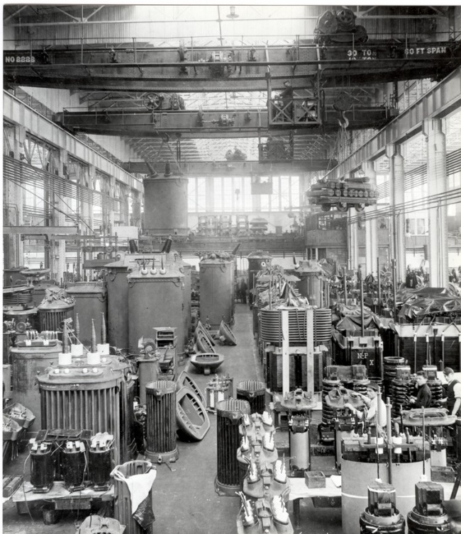 - an iron foundry, using cupola-type melting furnaces, for the production of cast iron transformer tanks (in later years, the tanks would be made of welded steel plates). This was on the site of the present Building 33.