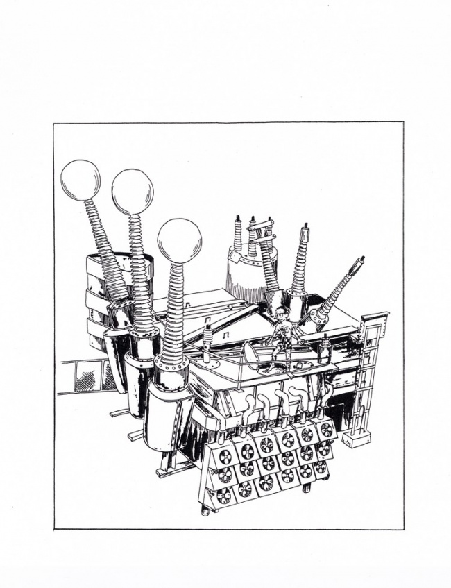 The windings of the phase-changing transformers were of a special design developed by G.E. engineers which would have allowed the transformers to be converted to straight three-phase transformers at some pertinent time. Doubtless, these engineers would have been surprised if they knew that such a changeover was destined never to happen!