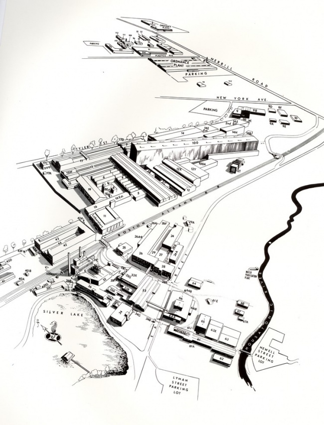 - New parking lots were constructed along the south side of East Street to accommodate G.E. Ordnance employees who would now be working in Buildings 28, 33, and 63. These buildings had been evacuated by the transformer operation.
