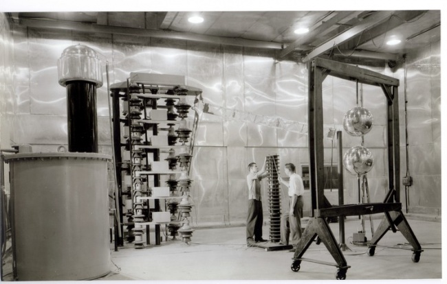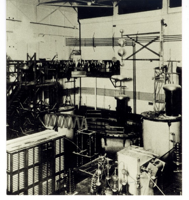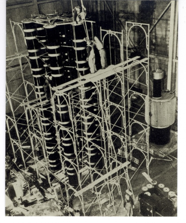 The history of the High Voltage Laboratory goes back much farther than the opening of Building 9 in 1949. It began when the need for the investigation of the exact nature of lightning-induced surges arose with the development of high voltage transmission of electric power over long distances. Long transmission lines, as well as the electrical equipment connected to them, are susceptible to high voltage surges from lightning strikes either to the line itself, or nearby.