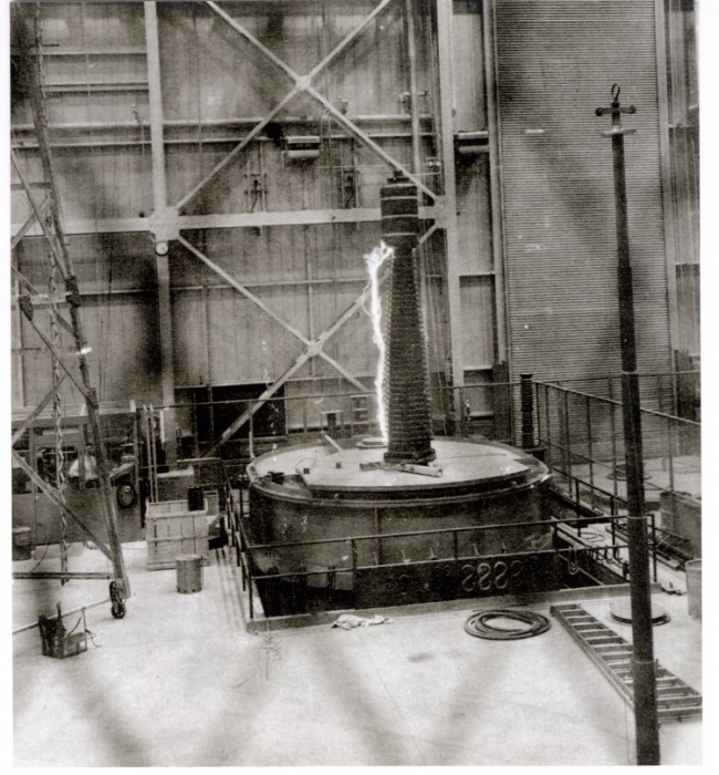 As transmission voltages rose higher and higher, the need for greater magnitudes of voltage for surge testing followed .accordingly. Thus, in 1916, the arrester group's lightning generator was uprated from 200-kv to 750-kv.