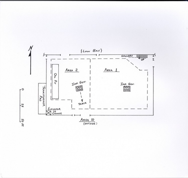 The high current generator in Area 3 was the original 1934 device. It had been moved and re-worked in its configuration. Later on, it was moved to the High Bay and installed in the southeast corner. This became known as "Area 14".