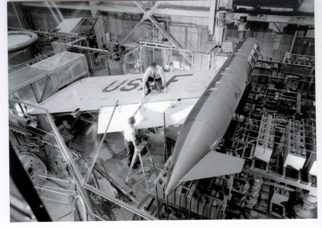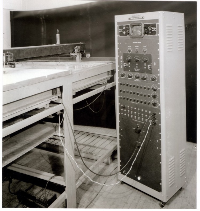 Also, beginning in the late 1960's, the old (1934) high current generator in the corner of the High Bay was put into service for the investigation of effects related to lightning strikes to aircraft. Primarily, this work was performed for the United States Air Force. The need for it arose because new "composite" type materials had been developed for use in airplane construction which were lighter than conventional aluminum construction. Unfortunately, these materials do not provide the "shielding" effect from lightning surges which metals such as aluminum do. This problem was compounded by the increasing use of delicate computerized electronic equipment on airplanes which is very susceptible to damage from such surges. At one point in time, an actual Air Force fighter plane wing was brought into Area 14 in the High Bay. Impulse currents from the high current generator were discharged through it, and the induced surge voltages on control wiring within the wing were measured. Larry Walko, of the Laboratory engineering staff, conducted this work. Subsequently, he went on to continue such work at the Wright-Patterson Air Force Base in Dayton, Ohio.