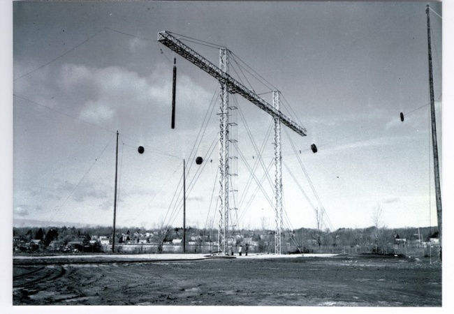 In 1921, Faccioli and Peek produced the first one million volt 60-Hertz discharge in this new facility. In addition, a one million volt experimental transmission line was erected from Building 12A running through the plant to the east. The steel lattice towers used to support this line remained in place for many years thereafter.