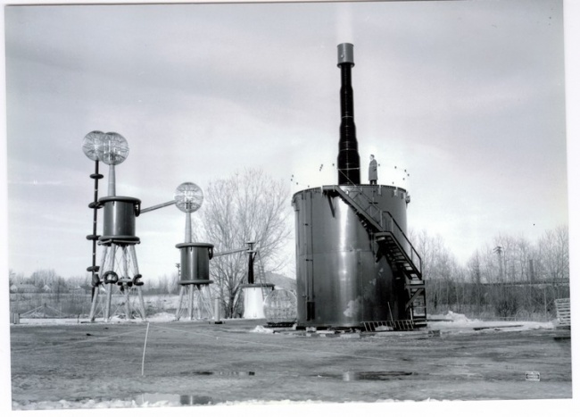 In 1965, the High Voltage Laboratory constructed a fifty foot high "portable" impulse generator. Its main usage was at Leadville, Colorado where an extensive series of tests was carried out to determine the flashover strengths of various types of insulating structures at very high altitudes (atmospheric pressure is a factor in this regard). Walt Duda, Hans Morf, and Granville G. ("Pete") Kemp of the Laboratory were instrumental in the design, construction, and operation of this device.