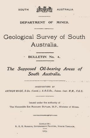 Wade, Arthur. 1917. “Supposed Oil-Bearing Areas of South Australia”. Bulletin of the Geological Survey of Western Australia, no. 4: 4-51.