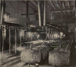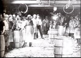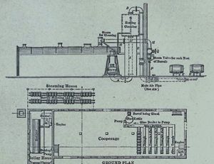 At the turn of the 20th century, the production of barrels was not just a business run in the proximity of the oil fields by a master cooper's laboratory, but rather it evolved into a large-scale standardized industry. The preparation of high quality barrels was an important step in the marketing of refined and distilled products. Petroleum barrels had to be perfectly tight and free from alien matter which may contaminate the product shipped inside, therefore it was necessary that they were properly driven, cleaned, glued and dried. The drying subsequent to gluing was the most difficult part of the process, since the glue was likely to break if dried too rapidly and mildew if dried too slowly.