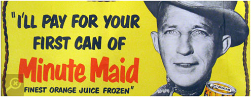 Crosby was also an astute businessman. Not only was he an investor in the business of radio and television; at one point, in 1948, he became a large investor in the Vacuum Foods Corp., which pioneered the first orange juice frozen concentrate. The company later changed its name to Minute Maid. Not content to be just an investor, Crosby obtained sole distribution rights for the West Coast.