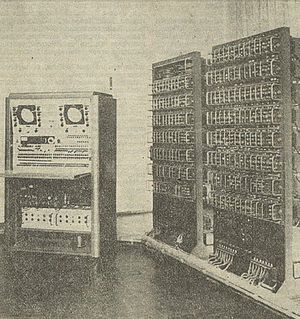 The first electronic digital computer to be constructed in Poland was the EMAL (Electronic Machine Automatically Computing), or the EMAL-1, based on the British EDSAC machine. Work began on the machine in 1953, and reached its most complete phase in 1955. Though it was never fully operational and dismantled before making any computations, it was a one-address computer based on a vacuum-tube logic and mercury memory, with 512 40-bit words and fixed-point, sign-plus, absolute-value arithmetic. Following the EMAL-1 was the XYZ, constructed in 1958 by Romuald Marczynski and Leon Lukaszewicz. It was based on the architecture and instruction set of the IBM 701 computer and was a one-address machine implemented in diode logic and dynamic vacuum-tube flip-flops, with 36-bit words and sign-plus absolute-value arithmetic. It later evolved into ZAM-2 in 1960 and subsequently the ZAM-41 computer. Using the programming language SAKO, also designed by Marczynski and Lukaszewicz, the need to use machine-code was almost entirely elminated.