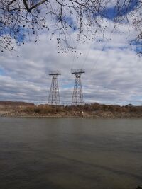 The Conowingo Dam lies across the Susquehanna River upstream from the town of Port Deposit, Maryland, U.S.A. It began operation in 1928, supplying electricity to Philadelphia and Baltimore. Originally equipped with seven turbines rated for 36 megawatts each, its hydroelectric capacity was enhanced in 1978 with the addition of four 65-megawatt turbines. The eagles of Conowingo (at certain times of year there may be as many as three hundred present) are a draw for nature lovers. The dam is 109 feet high, and almost a mile long.
