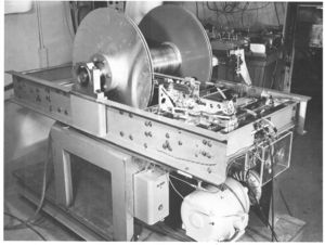 Only three months later, there was more good news. On February 10, 1954, the first random-access file test bed was used successfully to transfer data to and from a rotating magnetic disk. (See. Fig. 8) Progress seemed less rapid in designing mechanisms for moving the read-write heads to the selected disk; thrusting the two heads into the narrow spaces on either side of the disk; and finally reaching the desired track.
