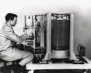 Events leading to the creation of the first magnetic disk storage product began in the early post-World War II years. IBM’s president, Thomas J. Watson, Sr., gave high priority to upgrading all products, using electronics where possible, and finding jobs for all employees who were returning from the armed services or who had been producing war materiel. An early action was to convert the IBM plant in Poughkeepsie, New York, from manufacturing war materiel to manufacturing the company’s upgraded electric typewriters.