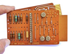 - IBM mass produced its own standardized and interchangeable printed-circuit boards in high volumes for a broad line-up of transistorized computers.