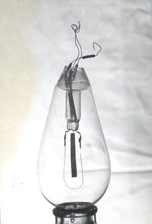 Edison determined that not only was carbon flying through the vacuum, but that it carried a charge. That is, electricity was flowing not only through the filament but also through the evacuated bulb. In order to measure this flow, he made a special bulb with a third electrode, to which he could attach an instrument to measure the current. He reasoned that if the current would flow between the two ends of the filament, it would also flow to this third electrode.
