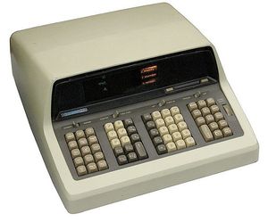 Another transistorized desktop calculator was the Wang LOCI (LOgarithmic Calculating Instrument) (Figure 4), introduced in 1965. By using the factor-combining method of calculating logarithms and anti-logarithms, this calculator provided functions useful for engineering, such as calculating roots and powers. The display unit was separate from the keyboard, and multiple keyboards could be ganged to a single LOCI display unit. Although it pioneered the concept of a programmable calculator, the LOCI was an engineering calculator that was too difficult to use for business and commercial applications. For example, the LOCI produced an answer of 3.999999999 for the multiplication of 2 x 2. While this was not a problem for engineers who were accustomed to slide rules with three digit accuracy, it was not acceptable for most non-technical users. In late 1966, Wang started selling the Model 300 calculator that was better suited for general use. Wang’s experience with the Model 300 led to a line of stand-alone word processors that were very successful in business applications.