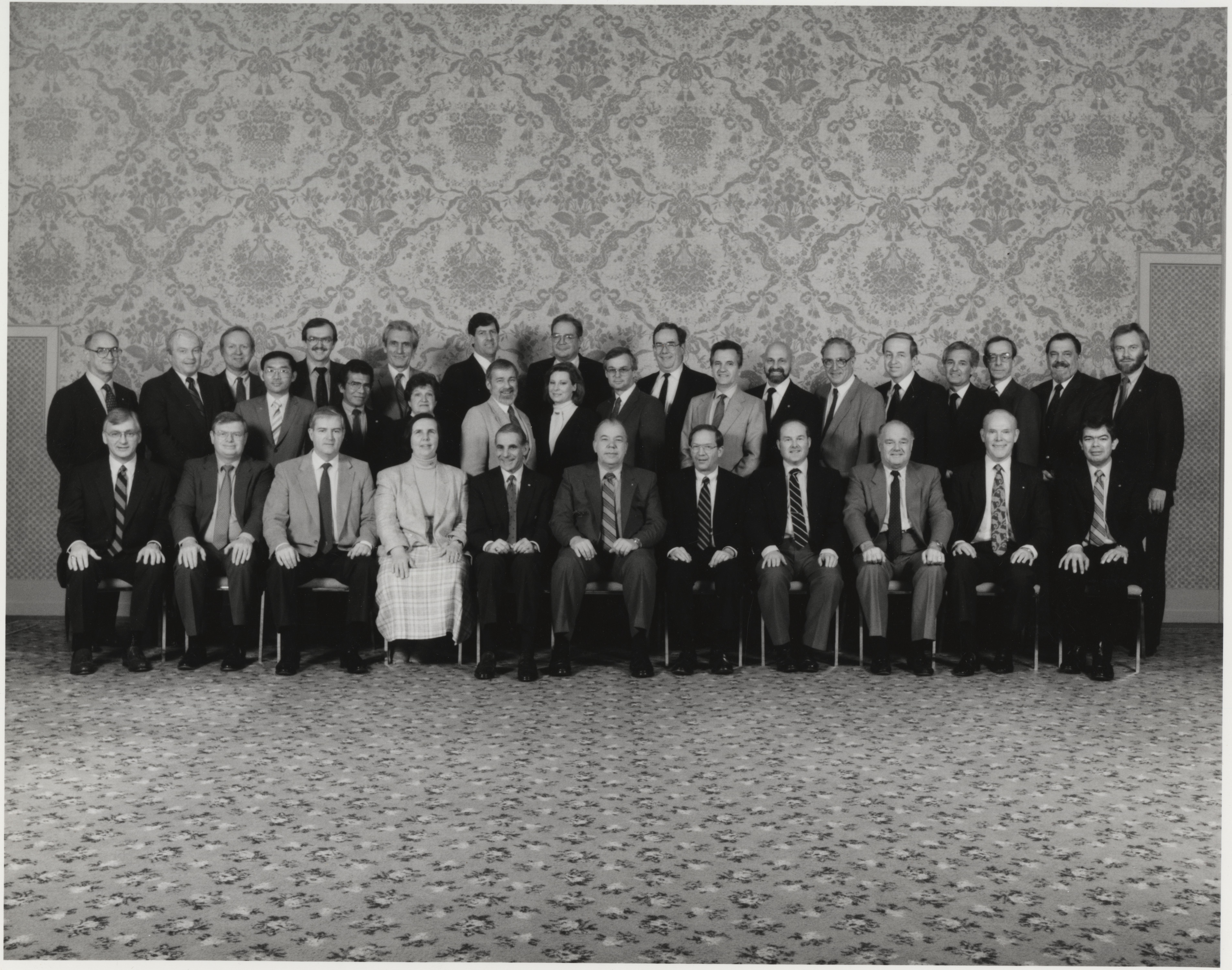 SEATED (LEFT TO RIGHT): Ronald G. Hoelzeman; Timothy N. Trick; Edward C. Bertnolli; Martha Sloan; Henry L. Bachman; Russell C. Drew; Emerson W. Pugh; Dennis Bodson; Wallace S. Read; N. Rex Dixon; Michael J. Whitelaw.