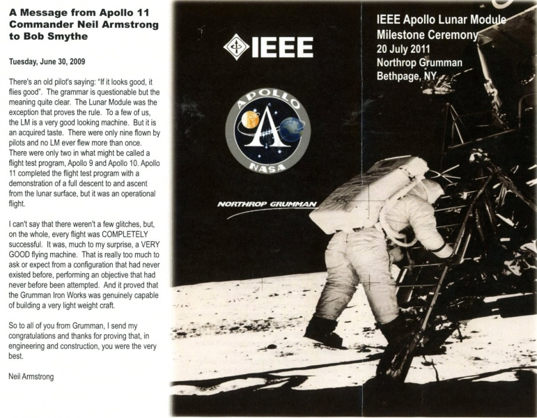 Front page of Grumman Lunar Module milestone dedication ceremony brochure 20 July 2011