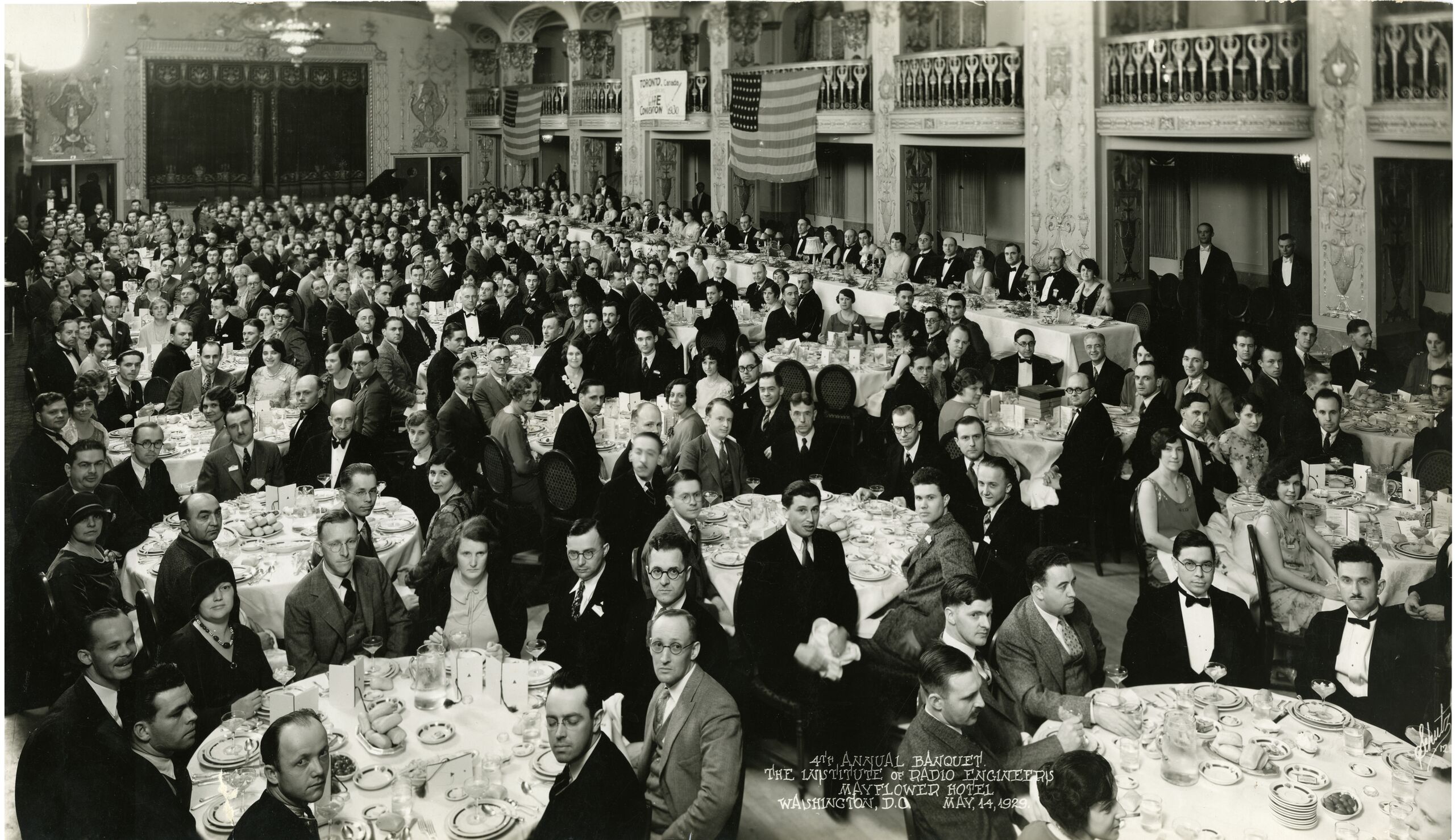 4th Annual Banquet - The Institute of Radio Engineers, Mayflower Hotel, Washington, DC, 14 May 1929. Alfred Goldsmith is seated at the head table