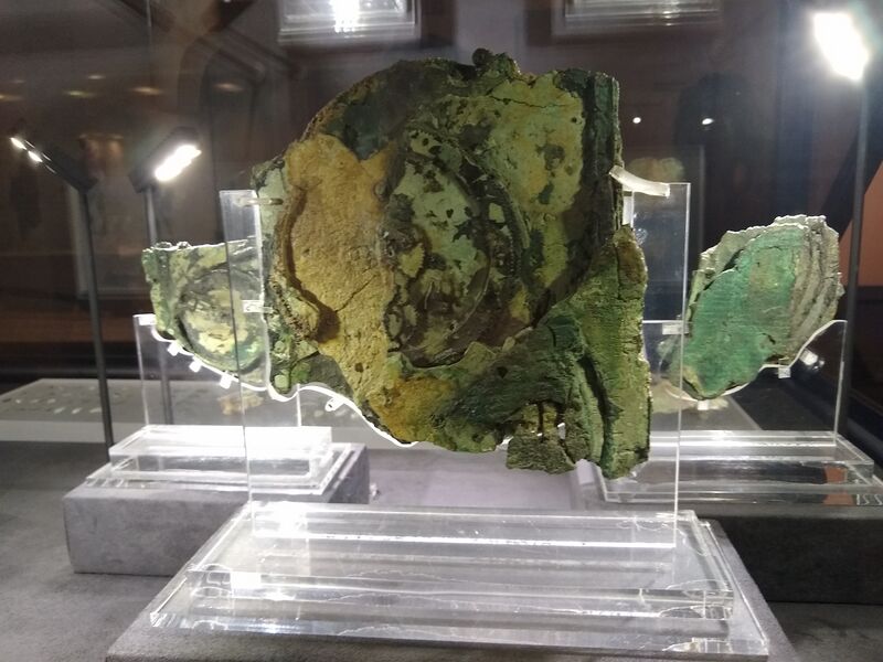 Remnants of the Antikythera Mechanism in the Archeological Museum in Athens. Photo taken in 2019 by Tom Fehring