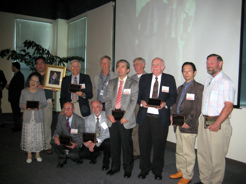 Honorees at 6 December 2010 Milestone Ceremony. Members of the DAC team. Kneeling: Bob White, Paul Prazak Standing: Lucy Wang (deceased honoree Tony Wang's mother), Vince Wang (Tony's brother) holding a portrait of Tony, Jim Naylor, Tony Miller, Koji Matsusako, Bill Lillis, Clay Tatom, Akira Morikawa, Paul Kresingshauser, (not pictured: Jimmy Eldridge). Photo taken by Linda Prazak