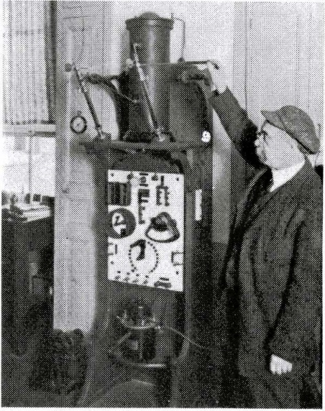 D'Arsonval adjusting the spark gap of his improved highfrequency generator