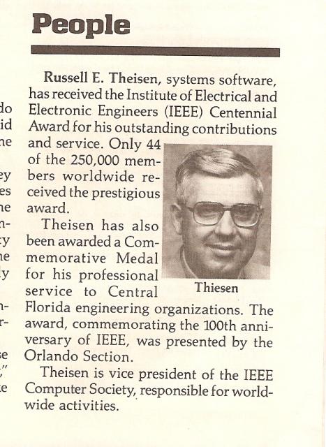 Russ Theisen was chosen as a Member of the IEEE Computer