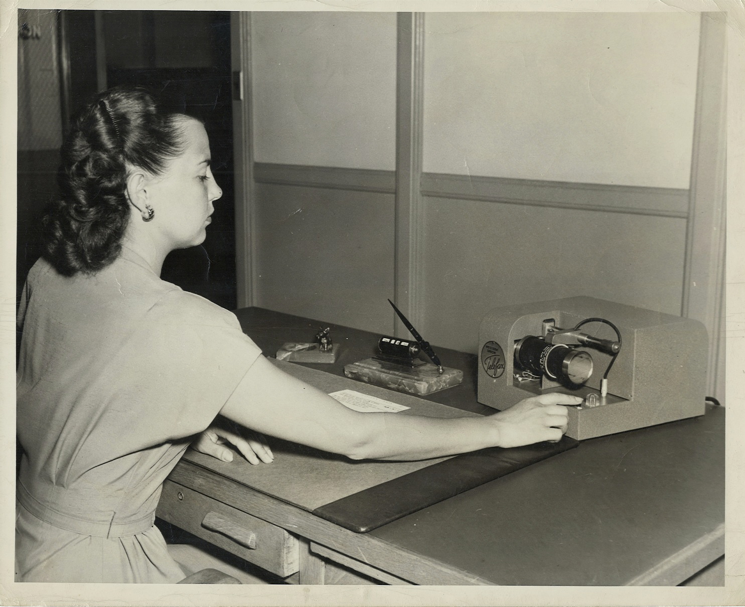 After introducing its Desk-Fax prototype in 1949 in eight U.S. cities, Western Union manufactured tens of thousands of the machines into the 1960s, a quantity unequaled by telephone-based fax machines until the 1970s. Courtesy William Conlon, Jr., http://william_martin.conlon.org/?page_id=18