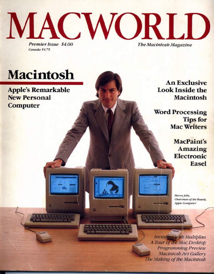 Fig. 9 Apple co-founder Steve Jobs introduced the Macintosh 128 on the cover of Macworld's debut issue in 1984; the machine popularized the handheld mouse controller and graphic user interface (GUI) for home users. Used with permission of Macworld ©2014. All rights reserved.
