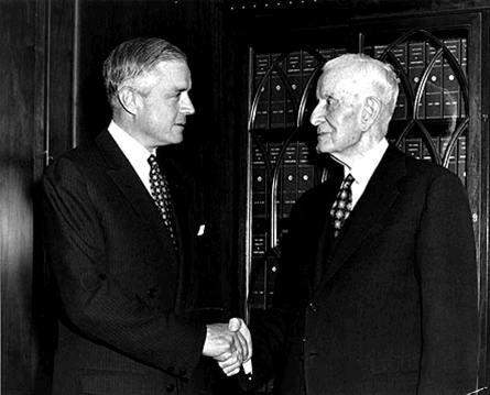 | current | 19:38, 14 October 2013 | 445 × 359 (135 KB) | Administrator7 (talk | contribs) | Thomas J. Watson, Jr., is congratulated by his father upon his promotion to chief executive officer of IBM on 8 May 1956. Six weeks later Watson, Sr., died of a heart attack. For 42 years, Watson Sr. had guided the company through the era of electromechan | |