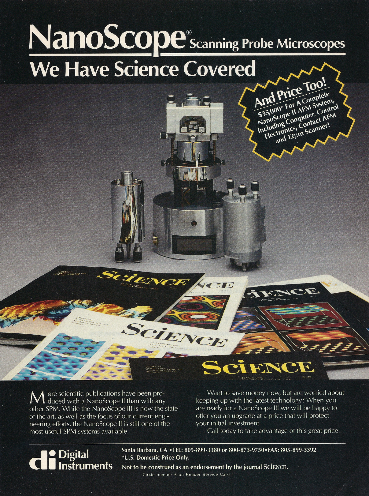 Digital Instruments advertisement from the “We Have Science Covered” campaign in 1993. Courtesy Bruker Corporation.
