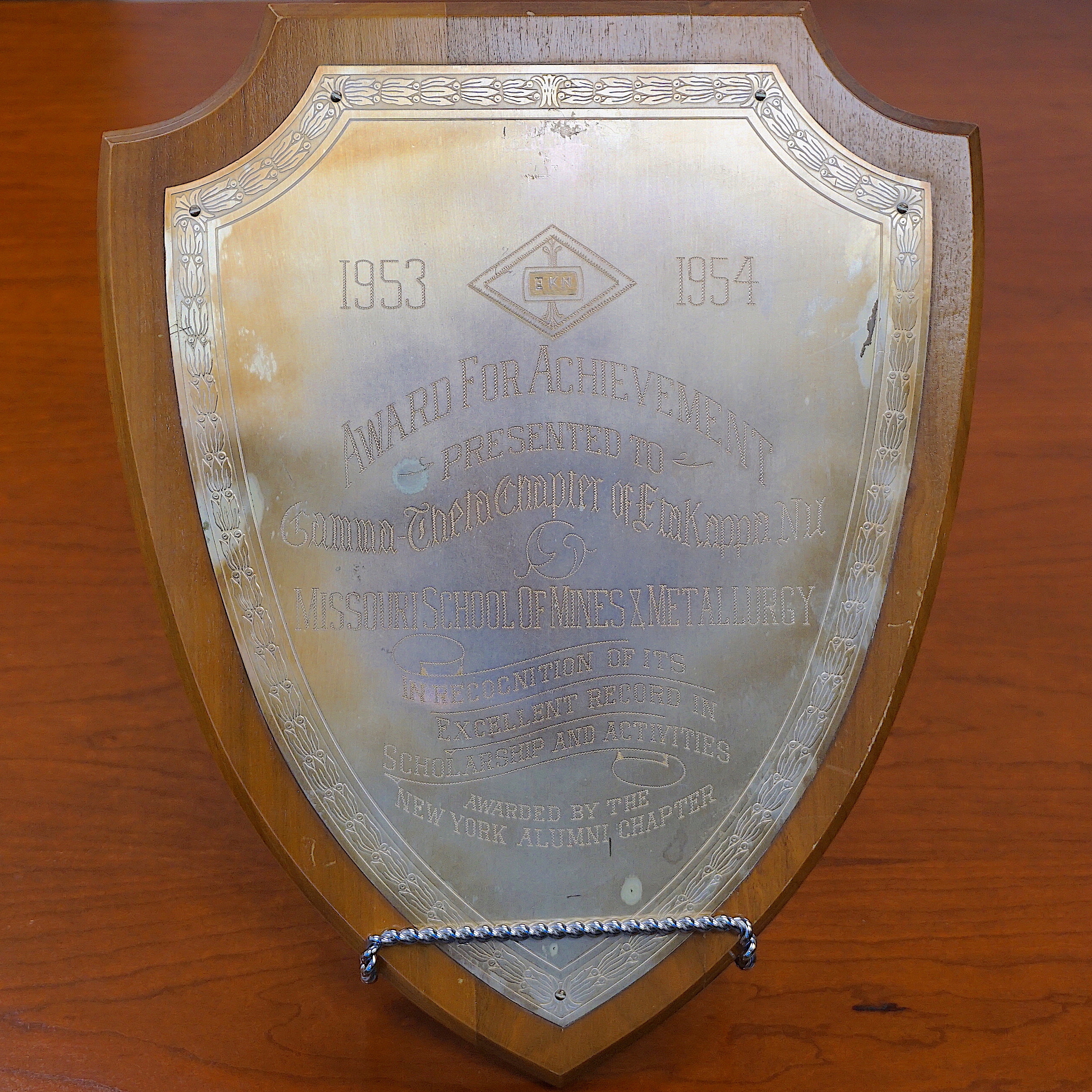 Eta Kappa Nu Outstanding Chapter Award Plaque for 1953-1954. The winning chapter was Gamma Theta from the Missouri School of Mines, Rolla, MO.