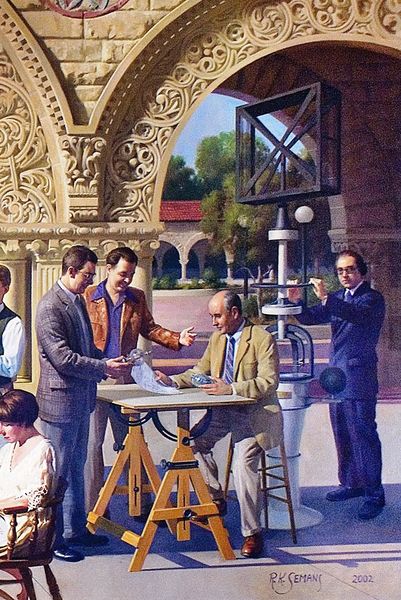 Robert K. Semans shows Ralph M. Heintz (seated) with Bill Eitel and Jack McCullough (standing) - (cropped extract)