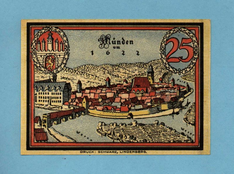 Notgeld paper money from the town of Hann_Munden. The Notgeld or emergency money was printed by many towns in Germany during the time of hyperinflation.