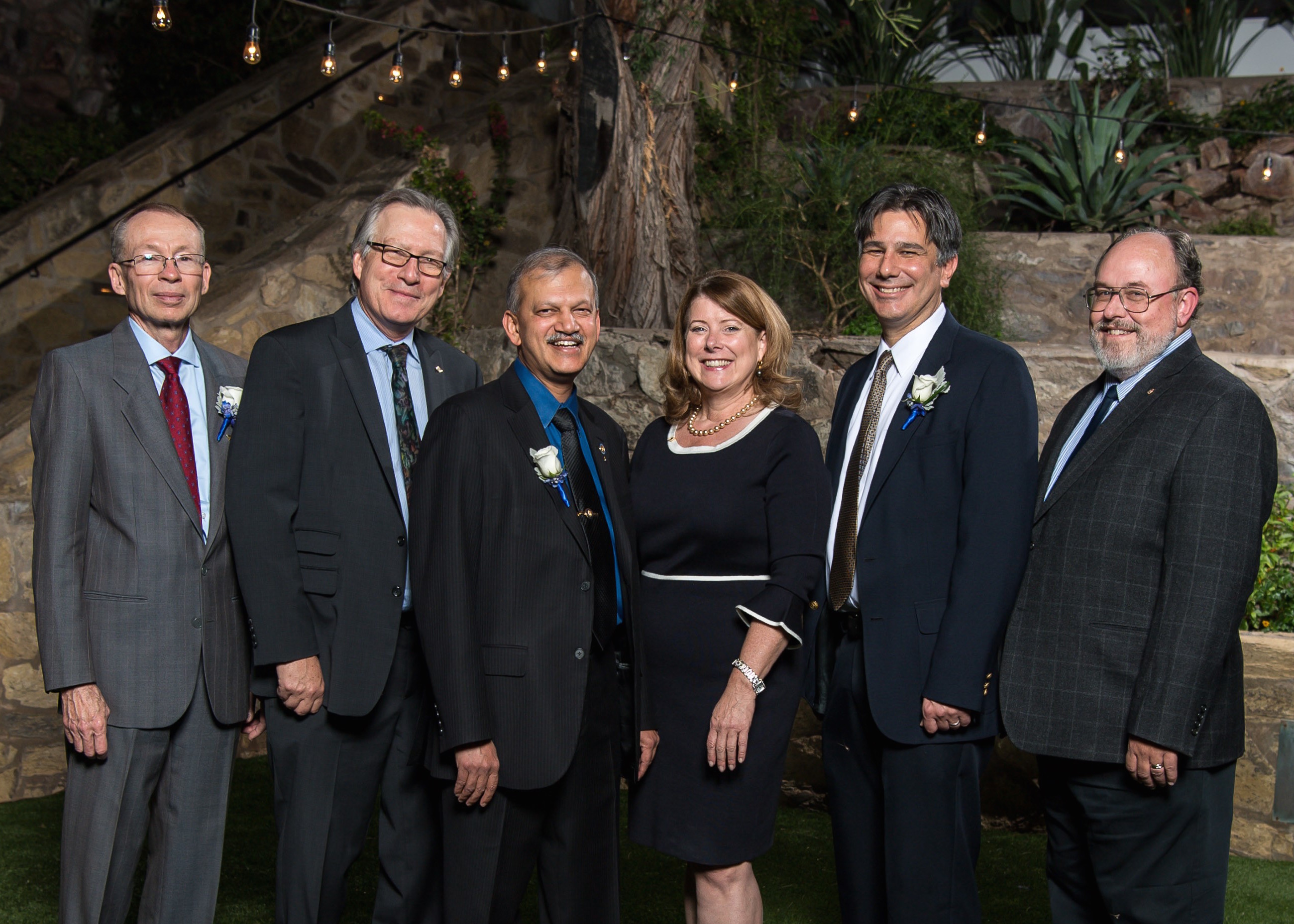 Presidents and Director of IEEE-Eta Kappa Nu: l-r John Orr (2013-2014), Stephen Goodnick (2011-2012), S. K. Ramesh (2016), Nancy Ostin (Director), Tim Kurzweg (2017), and Steve E. Watkins (2018). November 2017
