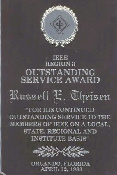 Russ Theisen received many IEEE Awards during his 35 years service to IEEE.