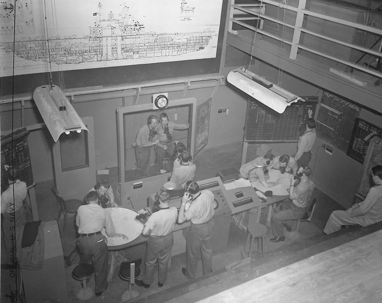 | current | 20:38, 4 February 2018 | 2,686 × 2,135 (499 KB) | Davidboslaugh (talk | contribs) | The training combat information center in the King and Prince Hotel. The aircraft carrier diagram in the background illustrates various shipboard inter communication circuits. U. S. Navy photo courtesy Coastal Georgia Historical Society |