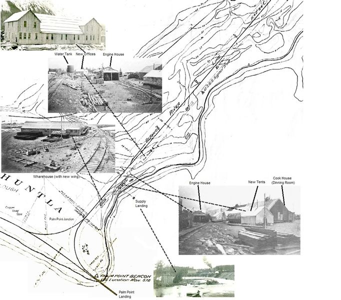 P11-xxx Alaska State Library-Ray Moss Photo Collection P11-034 Map showing Katalla Area (railroad map) P11-095 Katalla Co. construction camp with beach in foreground (Supply Landing) P11-013 Katalla railroad yard [?] (Warehouse) P11-098 Katalla railroad yard including several tent facilities (Cookhouse) P11-014 Katalla railroad yard with engine in center building (Engine House) P11-109 Large newly constructed building near waterfront. (New Offices)