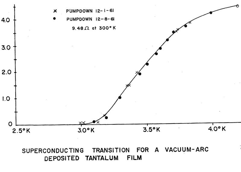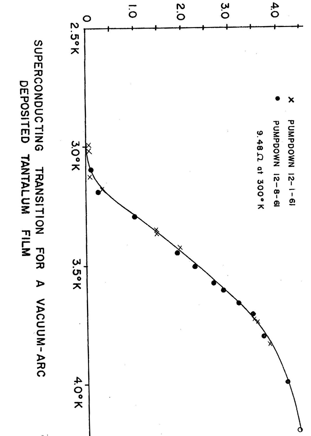 . Plot of R vs degrees Kelvin for Superconducting Tantalum film made by Vacuum Arc process. cerca 1962.