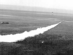 There was a rivalry between the mechanical designers and the GN&C engineers. The mechanical designers assumed that any failure had to be electrical and not mechanical. The third phase of testing was underwater launches off San Clemente Island, California. The missile was planted on the bottom in a torpedo tube under a LST (Landing Ship, Tank) and launched toward the island so that the on-board magnetic tape recorder could be recovered to provide the underwater telemetry. So far we had always managed to squeeze some sort of success out of each launch. The first underwater launch came out of the water in three pieces, went back over the LST, and started a fire on the deck. The mechanical engineers figured that they finally had their chance to nail GN&C. Since we were the only ones with an understanding of the control dynamics it became my responsibility to brief NOL upper management of the “failure”. I stepped up to the podium and stated that “for openers I want to declare the latest launch an unqualified success from a GN&C perspective”. The navy divers had aimed the torpedo tube at an underwater rise. The dynamics is such that the missile first sinks and develops upward angle of attack. Being hydrodynamically unstable the first and only commands given to the control system underwater are to dive. If left uncontrolled this unstable pitch would have caused SUBROC to continue to pitch up. The pitch controls hold it back with a dive command so as to maintain pitch control. The upper management of NOTS, who were responsible for the San Clemente range, got a hold of the on-board tape recordings and accused my junior engineer (John Kelly) of wiring up the controls backward causing the dive command, which flew the missile into the bottom.