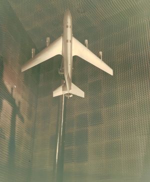 At the beginning of the 1960’s the building 1299 was built at NASA Langley and I was project engineer. I decided to build two antenna chambers which, at the time were the two largest in the country. One was 90’x30’x30’ and operated at 200 MHz, and the other was a tapered horn chamber of similar length with a 30’x30’ aperture and operated down to S Band. The tapered chamber was ideal for measuring the patterns of antennas mounted on scale model aircraft .The aeronautical engineers at NASA Langley were able to develop detailed drawings for aircraft. These scale models could be made in great precision by the model shop that built aircraft models for wind tunnel tests. I asked Mel Gilreath, who worked for me, to be responsible for the scale model aircraft and to coordinate the work ultimately with the staff at the OSU Antenna Laboratory. Mel was an extremely thorough person. The first scale model airplane Mel built was a 1/25th scale model KC -135, as shown in Figure 1.