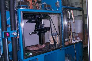 The puck robotic remote equipment for the PuCTF were developed by Kurt Peterson, and Don Pak; and the Author developed the robot control programs and the puck weighing & measuring station control programs. (See Don Pak & Roy Merrill, “Material Transport System in Support of the Plutonium Immobilization Program,” American Nuclear Society Ninth International Topical Meeting on Robotics & Remote Systems, Seattle, WA Mar. 4-8, 2001; and Kurt Peterson, Donald Pak & Roy Merrill, “Remote Equipment Development for the Plutonium Ceramification Test Facility at LLNL,” WSRC-MS-2000-00915, Rev. 1.) Kurt & Don were on loan to LLNL from Westinghouse Savannah River Co. during this project.