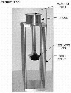 One exception to those investigated had some features which we used in our design; it was an LLNL model that used a clam shell shaped vacuum chuck with labyrinth seal for holding the pit at one pole of its principle axis with high vacuum while being rotated about that axis during the bisecting operation. It also used a mechanism borrowed from the standard plumber's copper pipe cutter that could be adapted for our purpose to bisect pits without generating chips or, for that matter, even plutonium dust ('finds') in the process. What that design as well as all the others did not include was a practical means of accommodating pits that regularly warped some from a perfect circular shape under the large forces produced during the bisecting process. Most used a rigid lathe-like means of holding the pit during the cutting operation.