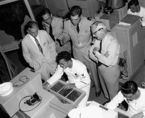 Our other OPNAV sponsor, Commander Chan Swallow, also thought the O/C was a good idea, but disagreed strongly with the tilt to the face. He thought it should be horizontal like the NC-2 plotter. The tilt was the subject of more friendly lighthearted discussion than it was worth but we asked Hughes Aircraft (the display contractor) to build a wooden mockup of the O/C and ship it to Washington. It was rather large and blocked access to our small office for several days. Once we were able to demonstrate the utility of the tilt Commander Swallow agreed. We later had good reason to doubt our CRT decisions when one of the tubes exploded in a Hughes test shop and blew a hole in the ceiling where the CRT gun departed. Luckily, it was on a weekend when no one was in the building. Hughes met with the supplier and fashioned a protective covering for the tube. O/Cs eventually became standard in the fleet and I have never heard of another one exploding.