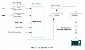 These digital television broadcast services, in turn, provided more efficient use of the spectrum, higher quality images accompanied by multi channel, surround sound, the ability to include supporting multiple digital data streams in the broadcast channel, and the possibility of a transmitting a theatre experience to the home ... and all of this was built on the foundation provided by the 4:2:2 Component Digital Television Standard, first described in February 1980 and adopted as an international agreement in February 1982. (A discussion of the international community’s effort to develop a standard for digital terrestrial television broadcasting (DTTB) is found in an article titled “Digital Television: The Digital Terrestrial Television Broadcasting (DTTB) Standard.” Figure 3 shows the DTTB System Model upon which the standard is based.)