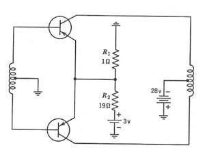 The power amplifier used two 2N43 transistors in a push-pull configuration in order to eliminate even-order distortion, and to increase the power output over that of a single device. Class B operation was used because it has significant advantages over a Class A system. Typically, the theoretical maximum power output of a push-pull Class A system is equal to 0.5 times the transistor power dissipation, while that of a Class B system is 3.68 times this dissipation. Additionally, the supply power is conserved because there is no steady state power dissipation under quiescent conditions.