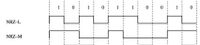When I looked at the digital data stream I saw data artifacts incompatible with achieving carrier lock on a ground receiver. There was random data, of course, but there were also long runs of ones, high level signal, and runs of zeros, low level signal, along with runs of alternating high and low signal levels of equal duration, at half the bit rate, a “dotting pattern”. After differential conversion , i.e. converting the level signal coding, NRZ-L (non return to zero - level), put out by the SFE to NRZ-M (Non Return to Zero - Mark) a run of NRZ-L ones converts to a dotting pattern at half the bit rate, and a run of NRZ-L dotting pattern at half the bit rate converts to a dotting pattern at one- quarter the bit rate. Figure 9 shows an example of NRZ-L vs. NRZ-M line coding.