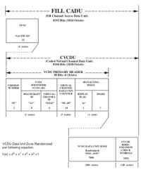 Consider the CADUs to be the downlink container for instrument data, overhead information, and telemetry. The CADUs carry Coded Virtual Channel Data Units (CVCDUs) as shown in Figure 7. CADUs can also be Fill CADUs when they carry instrument fill to keep a constant data rate on the downlink when the instruments have no data to forward to the ground. See Figure 8 for the Fill CADU layout. This is also taken from the Direct Access System User’s Guide for the EOS–AM Spacecraft (ICD–107).