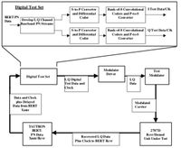 We asked for a demonstration of the problem and they showed us that when the DAS DB/DP was active, connected to the test receiver, that the receiver would not maintain lock. To diagnose the problem, LM Astro provided a digital tape recorded with the output of the spacecraft SFE (science formatting equipment). At our engineering lab I played the recorded data thru a test modulator into a prototype of the test receiver we supplied LM Astro and saw the same results as in the high bay at Valley Forge. See figure 6 (from the author’s papers) for a block diagram of the test setup. (Instead of BERT PN data the taped SFE data fed the Digital Test Set.) A look at the taped digital input to the test modulator gave a hint of the problem.