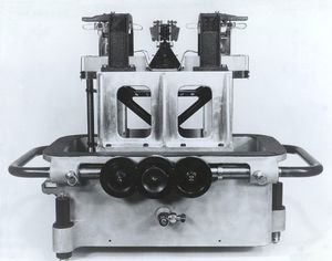 The pendulum was carefully mounted and suspended on a knife edge; the adjustment was perfect that on being started by a touch of the hand, it would have oscillated for twelve hours. A small mirror was mounted on the pendulum so as to throw a beam of light which may be observed through a small telescope. The period of swing has been measured within one ten-millionth part of a second. The actual measurement of the period of swing was a complicated process, but the extreme accuracy with which it may be reproduced, gave the pendulum a high credibility among petroleum geologists. At the same time of these government efforts, petroleum companies also established their own geophysical research and development departments, hiring physicists and electrical engineers. Between the 1920s and 1930s, before gravimeters took over the place of gravity pendulums in the petroleum prospecting, the development of pendulums was a prolific industrial-scientific effort that involved also leaders in material sciences companies and artificial production by mean of controlled processes like General Electric, and precision optics like Bausch & Lomb.